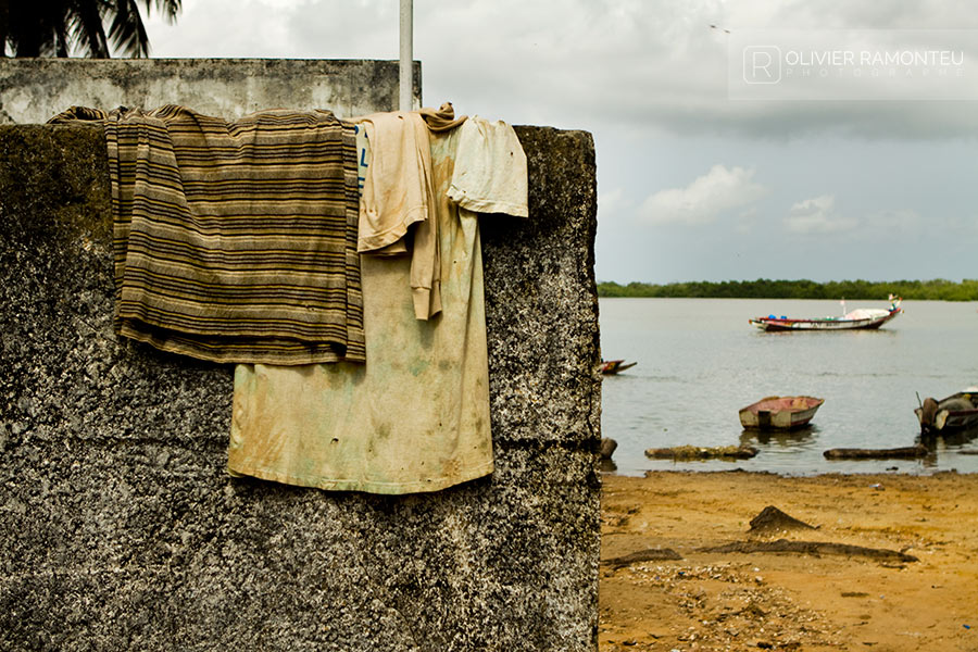 Et il faut avouer que ce petit bout de terre au milieu des mangroves, il faut le mériter. Après le calvaire de mon marathon des routes, il me faut encore embarquer sur une pirogue pour une ultime étape rendue plus pittoresque par le déluge qui s’abat sur notre frêle embarcation. De l’eau dessous, de l’eau dessus. De l’eau de toutes parts. De l’eau partout. Un enfer pour alcoolique.