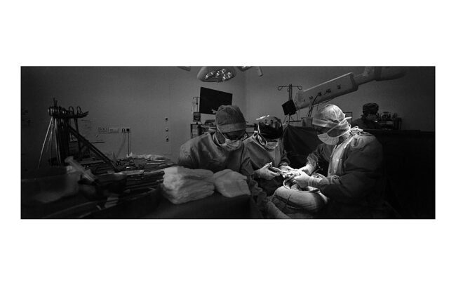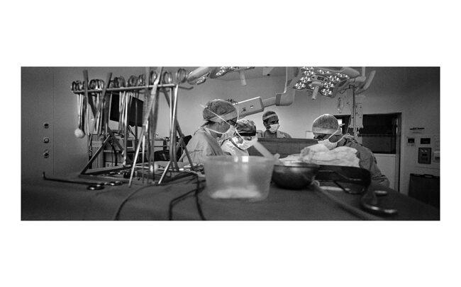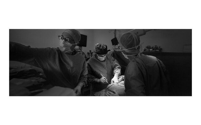 Photographier une opération chirurgicale place le photographe devant une question essentielle. Doit-il montrer, suggérer ou cacher les aspects les plus explicites d’une opération ? Faut-il montrer du sang ? Faut-il photographier les détails anatomiques qui font l’objet de l’intervention ?